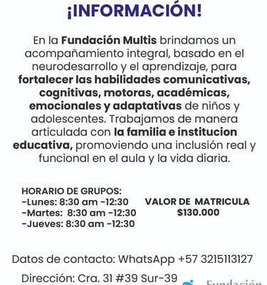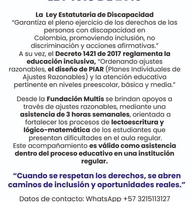 En la Fundación Multis reconocemos que el camino hacia la inclusión comienza en casa; por ello, acompañamos a las familias y cuidadores en procesos de: